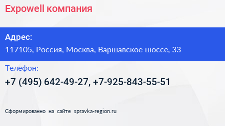 Expowell, компания по адресу 117105, Россия, Москва, Варшавское шоссе, 33 в дальнейшем Организация, размещена в следующих категориях: