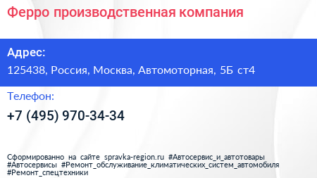 Ферро, производственная компания по адресу 125438, Россия, Москва, Автомоторная, 5Б ст4 в дальнейшем Организация, размещена в следующих категориях: