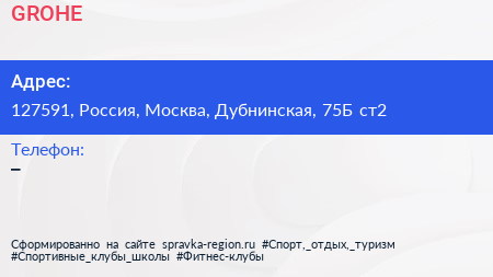 GROHE по адресу 127591, Россия, Москва, Дубнинская, 75Б ст2 в дальнейшем Организация, размещена в следующих категориях: