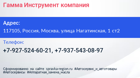 Гамма Инструмент, компания по адресу 117105, Россия, Москва, улица Нагатинская, 1 ст2 в дальнейшем Организация, размещена в следующих категориях: