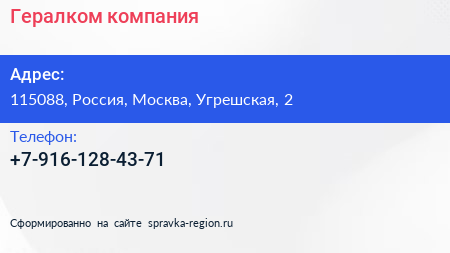 Гералком, компания по адресу 115088, Россия, Москва, Угрешская, 2 в дальнейшем Организация, размещена в следующих категориях: