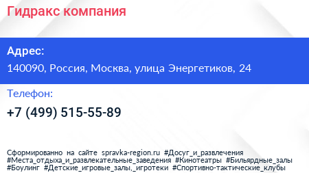 Гидракс, компания по адресу 140090, Россия, Москва, улица Энергетиков, 24 в дальнейшем Организация, размещена в следующих категориях: