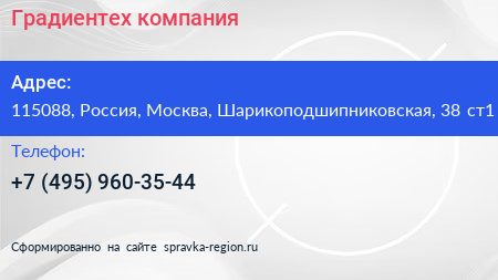 Градиентех, компания по адресу 115088, Россия, Москва, Шарикоподшипниковская, 38 ст1 в дальнейшем Организация, размещена в следующих категориях: