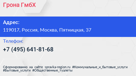 Грона ГмбХ по адресу 119017, Россия, Москва, Пятницкая, 37 в дальнейшем Организация, размещена в следующих категориях: