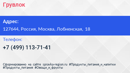 Грувлок по адресу 127644, Россия, Москва, Лобненская, 18 в дальнейшем Организация, размещена в следующих категориях: