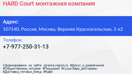 HARD-Court, монтажная компания по адресу 107140, Россия, Москва, Верхняя Красносельская, 3 к2 в дальнейшем Организация, размещена в следующих категориях: