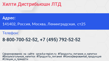 Хилти Дистрибьюшн ЛТД по адресу 141402, Россия, Москва, Ленинградская, ст25 в дальнейшем Организация, размещена в следующих категориях: