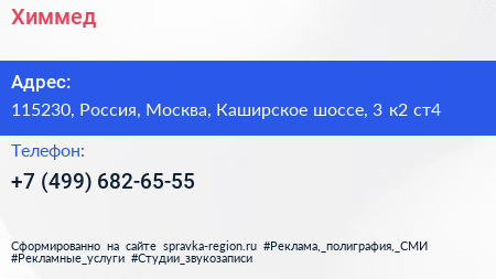 Химмед по адресу 115230, Россия, Москва, Каширское шоссе, 3 к2 ст4 в дальнейшем Организация, размещена в следующих категориях:
