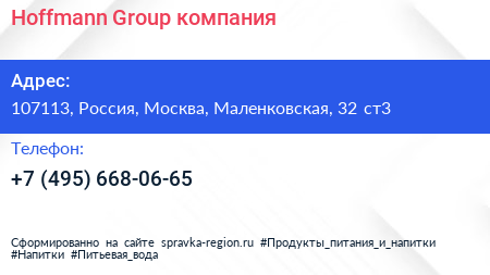 Hoffmann Group, компания по адресу 107113, Россия, Москва, Маленковская, 32 ст3 в дальнейшем Организация, размещена в следующих категориях: