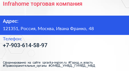 Infrahome, торговая компания по адресу 121351, Россия, Москва, Ивана Франко, 48 в дальнейшем Организация, размещена в следующих категориях: