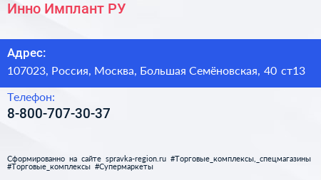Инно Имплант РУ по адресу 107023, Россия, Москва, Большая Семёновская, 40 ст13 в дальнейшем Организация, размещена в следующих категориях: