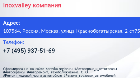 Inoxvalley, компания по адресу 107564, Россия, Москва, улица Краснобогатырская, 2 ст75 в дальнейшем Организация, размещена в следующих категориях:
