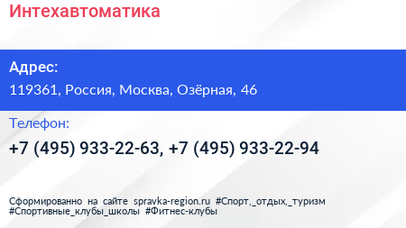 Интехавтоматика по адресу 119361, Россия, Москва, Озёрная, 46 в дальнейшем Организация, размещена в следующих категориях: