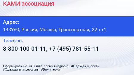 КАМИ, ассоциация по адресу 143960, Россия, Москва, Транспортная, 22 ст1 в дальнейшем Организация, размещена в следующих категориях: