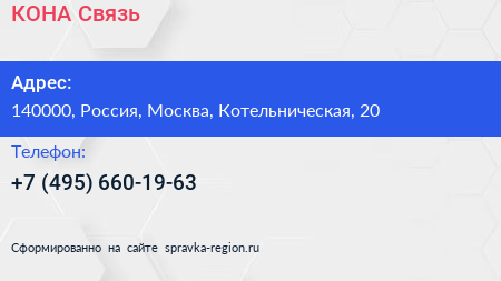КОНА-Связь по адресу 140000, Россия, Москва, Котельническая, 20 в дальнейшем Организация, размещена в следующих категориях: