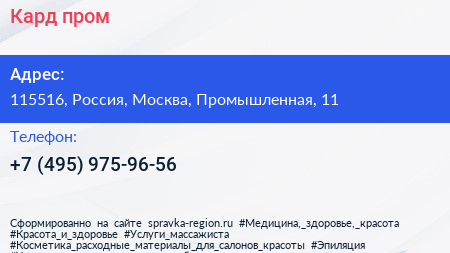 Кард-пром по адресу 115516, Россия, Москва, Промышленная, 11 в дальнейшем Организация, размещена в следующих категориях: