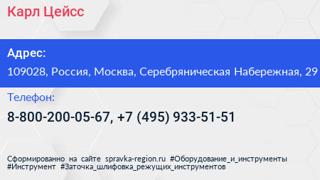 Карл Цейсс по адресу 109028, Россия, Москва, Серебряническая Набережная, 29 в дальнейшем Организация, размещена в следующих категориях: