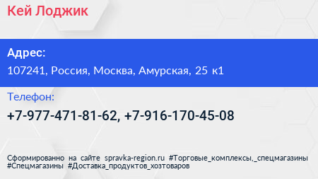 Кей Лоджик по адресу 107241, Россия, Москва, Амурская, 25 к1 в дальнейшем Организация, размещена в следующих категориях: