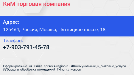 КиМ, торговая компания по адресу 125464, Россия, Москва, Пятницкое шоссе, 18 в дальнейшем Организация, размещена в следующих категориях: