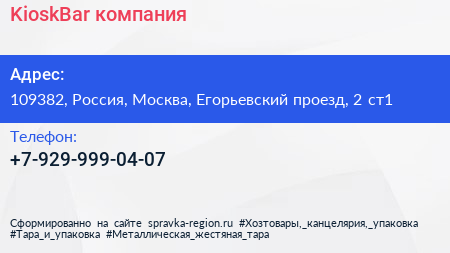 KioskBar, компания по адресу 109382, Россия, Москва, Егорьевский проезд, 2 ст1 в дальнейшем Организация, размещена в следующих категориях: