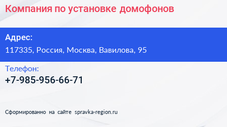 Компания по установке домофонов по адресу 117335, Россия, Москва, Вавилова, 95 в дальнейшем Организация, размещена в следующих категориях: