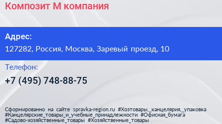 Композит-М, компания по адресу 127282, Россия, Москва, Заревый проезд, 10 в дальнейшем Организация, размещена в следующих категориях: