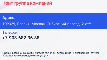 Конт, группа компаний по адресу 109029, Россия, Москва, Сибирский проезд, 2 ст9 в дальнейшем Организация, размещена в следующих категориях: