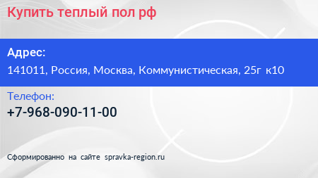 Купить-теплый-пол.рф по адресу 141011, Россия, Москва, Коммунистическая, 25г к10 в дальнейшем Организация, размещена в следующих категориях: