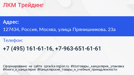 ЛКМ Трейдинг по адресу 127434, Россия, Москва, улица Прянишникова, 23а в дальнейшем Организация, размещена в следующих категориях: