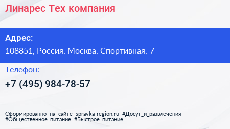 Линарес-Тех, компания по адресу 108851, Россия, Москва, Спортивная, 7 в дальнейшем Организация, размещена в следующих категориях: