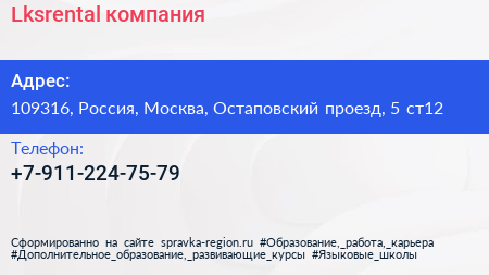 Lksrental, компания по адресу 109316, Россия, Москва, Остаповский проезд, 5 ст12 в дальнейшем Организация, размещена в следующих категориях: