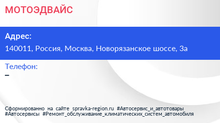 МОТОЭДВАЙС по адресу 140011, Россия, Москва, Новорязанское шоссе, 3а в дальнейшем Организация, размещена в следующих категориях: