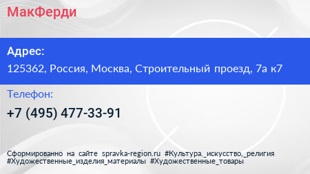 МакФерди по адресу 125362, Россия, Москва, Строительный проезд, 7а к7 в дальнейшем Организация, размещена в следующих категориях: