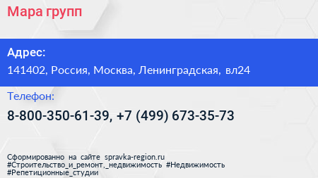 Мара групп по адресу 141402, Россия, Москва, Ленинградская, вл24 в дальнейшем Организация, размещена в следующих категориях: