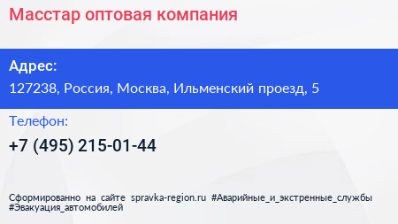 Масстар, оптовая компания по адресу 127238, Россия, Москва, Ильменский проезд, 5 в дальнейшем Организация, размещена в следующих категориях: