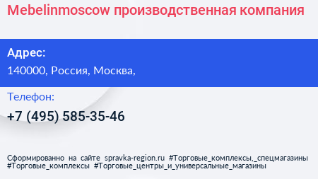 Mebelinmoscow, производственная компания по адресу 140000, Россия, Москва, в дальнейшем Организация, размещена в следующих категориях: