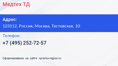 Медтех ТД по адресу 123112, Россия, Москва, Тестовская, 10 в дальнейшем Организация, размещена в следующих категориях: