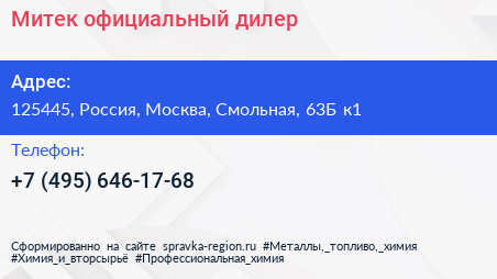 Митек, официальный дилер по адресу 125445, Россия, Москва, Смольная, 63Б к1 в дальнейшем Организация, размещена в следующих категориях: