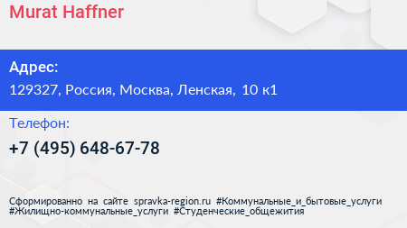 Murat Haffner по адресу 129327, Россия, Москва, Ленская, 10 к1 в дальнейшем Организация, размещена в следующих категориях: