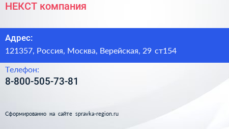 НЕКСТ, компания по адресу 121357, Россия, Москва, Верейская, 29 ст154 в дальнейшем Организация, размещена в следующих категориях: