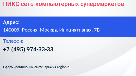 НИКС, сеть компьютерных супермаркетов по адресу 140009, Россия, Москва, Инициативная, 7Б в дальнейшем Организация, размещена в следующих категориях: