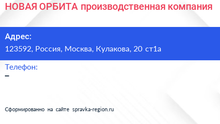 НОВАЯ ОРБИТА, производственная компания по адресу 123592, Россия, Москва, Кулакова, 20 ст1а в дальнейшем Организация, размещена в следующих категориях: