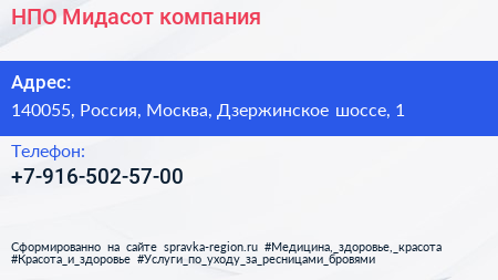 НПО Мидасот, компания по адресу 140055, Россия, Москва, Дзержинское шоссе, 1 в дальнейшем Организация, размещена в следующих категориях: