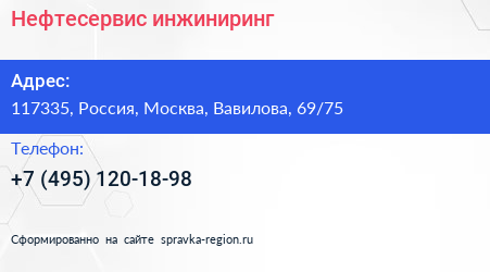 Нефтесервис инжиниринг по адресу 117335, Россия, Москва, Вавилова, 69/75 в дальнейшем Организация, размещена в следующих категориях: