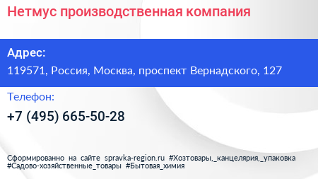 Нетмус, производственная компания по адресу 119571, Россия, Москва, проспект Вернадского, 127 в дальнейшем Организация, размещена в следующих категориях: