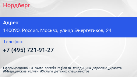 Нордберг по адресу 140090, Россия, Москва, улица Энергетиков, 24 в дальнейшем Организация, размещена в следующих категориях: