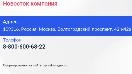 Новосток, компания по адресу 109316, Россия, Москва, Волгоградский проспект, 42 к42а в дальнейшем Организация, размещена в следующих категориях: