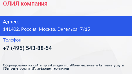 ОЛИЛ, компания по адресу 141402, Россия, Москва, Энгельса, 7/15 в дальнейшем Организация, размещена в следующих категориях: