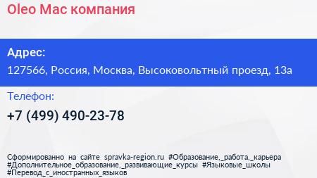 Для связи с организацией воспользуйтесь номером телефона: +7 (499) 490-23-78. Пн: c 10:00-18:00, Вт: c 10:00-18:00, Ср: c 10:00-18:00, Чт: c 10:00-18:00, Пт: c 10:00-18:00, Сб: выходной, Вс: выходной, вы можете обратиться в эту организацию.