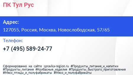 ПК Тул-Рус по адресу 127055, Россия, Москва, Новослободская, 57/65 в дальнейшем Организация, размещена в следующих категориях: